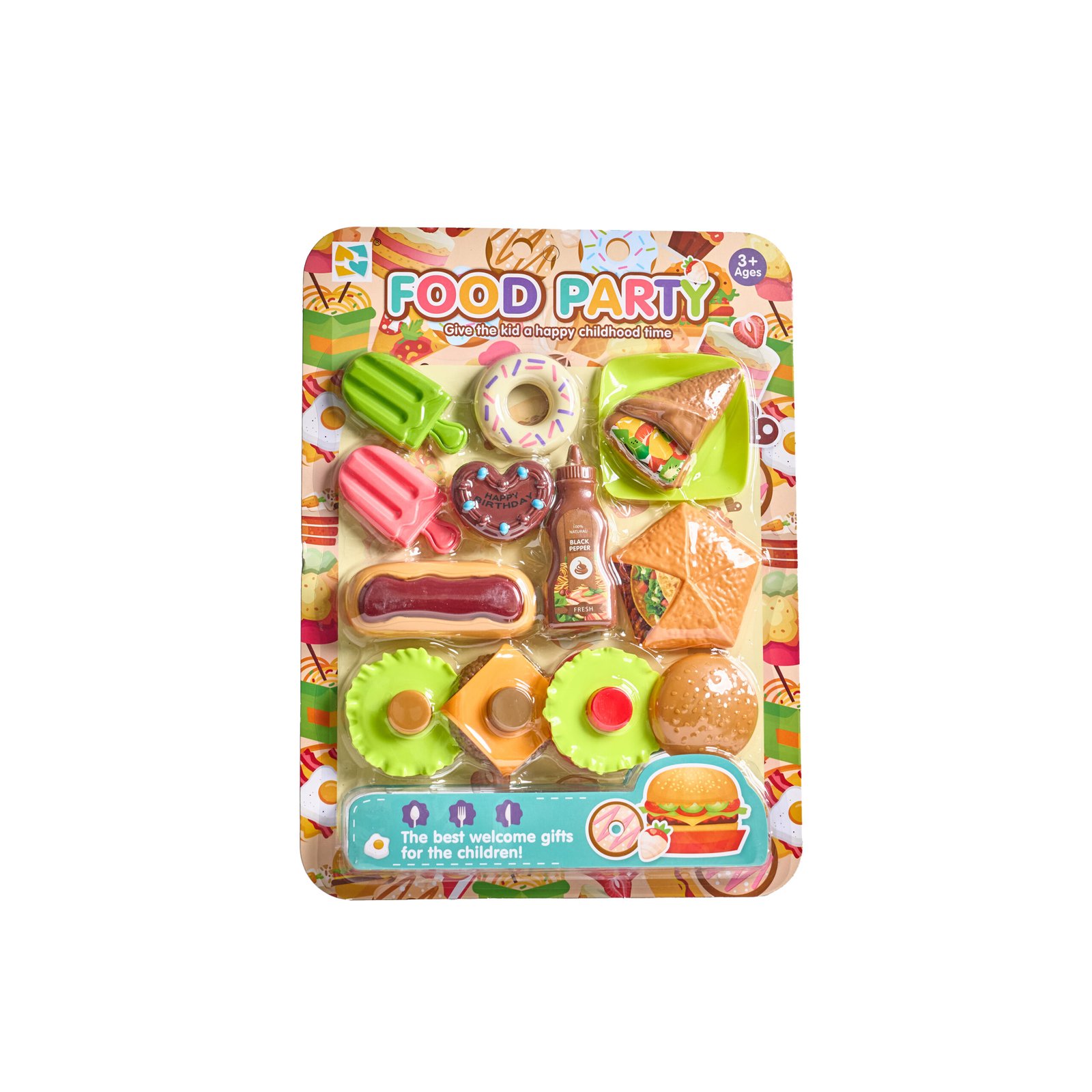 مجموعة مليئة بالمأكولات والحلويات المتنوعة تمنح الأطفال شعور العزيمة والاحتفال، وتشجعهم على اللعب التخيلي وكأنهم في حفلة حقيقية